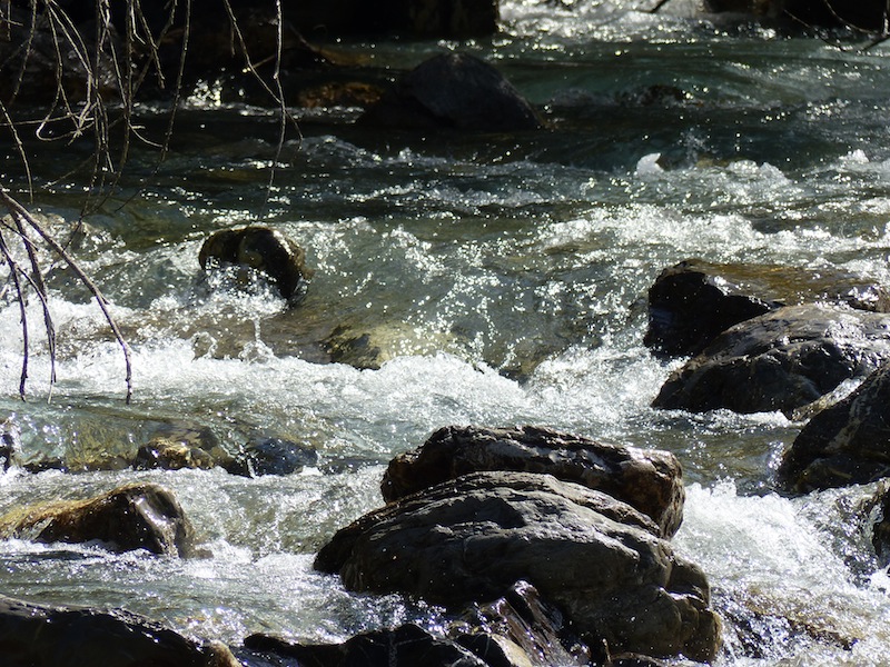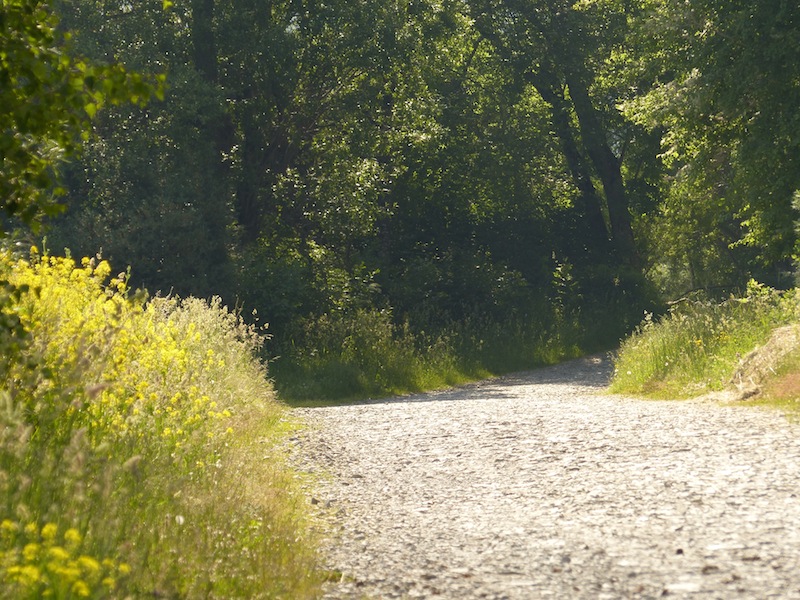 Descente vers la Rouanne par la route, on passe le pont et on prend la piste à gauche qui remonte la Rouanne, rive gauche.